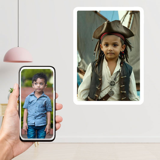 Turn your boy’s photo into a unique portrait canvas! Choose a character like a superhero, astronaut, cowboy, or more. Printed on premium canvas, hand-stretched over a wooden frame, with vibrant, kid-friendly colours.